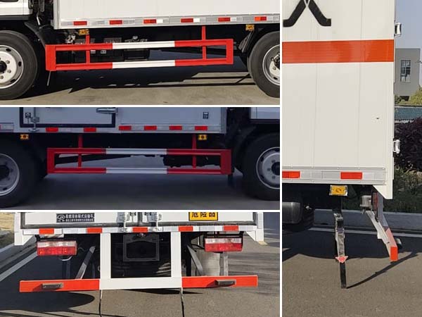 | 配置 | 车厢顶部封闭不可开启;ABS型号/厂家:ABS型号:ABS/ASR-24V-4S/4M,厂家:襄阳东风隆诚机械有限责任公司;安装有限速装置;限速装置限速(km/h):80;安装有具有卫星定位功能的行驶记录仪;随底盘选装驾驶室;选装厢体开门型式及位置;选装瓦楞板结构厢体;选装起重尾板(收起状态水平长度为290mm),尾板质量为450kg;仅采用底盘3390mm轴距;该车选装ETC车载装置;发动机/油耗申报值(L/100km)对应关系为:D25TCIF1/20.3;侧面防护及后下部防护装置材料材质:Q235,侧面防护连接方式:焊接连接;后下部防护装置连接方式:焊接加螺栓连接,断面尺寸(宽×高):45×100(mm),离地高度:460mm;选装起重尾板时,装圆形后防护,连接方式:焊接加螺栓连接;后下部防护装置断面尺寸为:Φ110mm,离地高度:400mm;运输独立容器(瓶)包装的货物,危险货物类项号:3;该车为危险品货物运输车;仅采用前轮盘式制动器,前置排气管,子午线轮胎;转向轮安装爆胎应急防护装置; | ||
