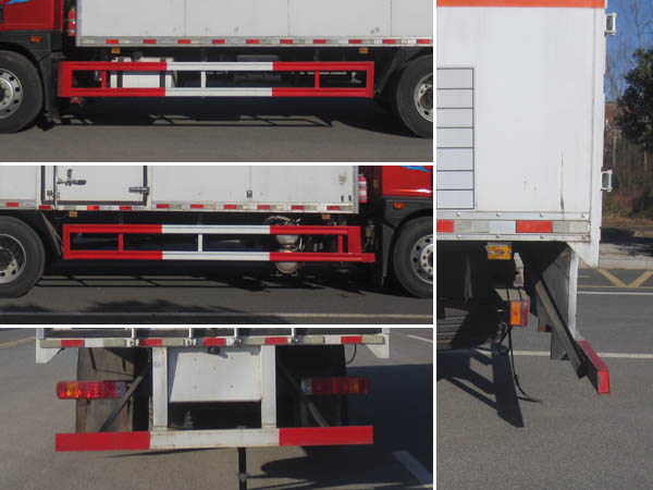 | 配置 | EBS生产厂家/型号:克诺尔制动系统(大连)有限公司/EBS 5;安装有限速装置;限速装置限速(km/h):80;安装有具有卫星定位功能的行驶记录仪;随底盘选装驾驶室;该车选装ETC车载装置;发动机/油耗值(L/100km)对应关系为:CA6DLD-22E6/26.53;侧后防护情况:侧面防护及后下部防护装置材料材质:Q235,侧面防护连接方式:焊接连接;后下部防护装置连接方式:焊接加螺栓连接,断面尺寸(宽×高):50×120(mm),离地高度:415mm;车厢顶部封闭且不可开启;运输独立容器(瓶)包装的货物;危险货物类项号:9;其他说明:该车为危险品货物运输车;仅采用前轮盘式制动器,前置排气管,子午线轮胎;后轴为空气悬架;转向轮安装爆胎应急防护装置; | ||